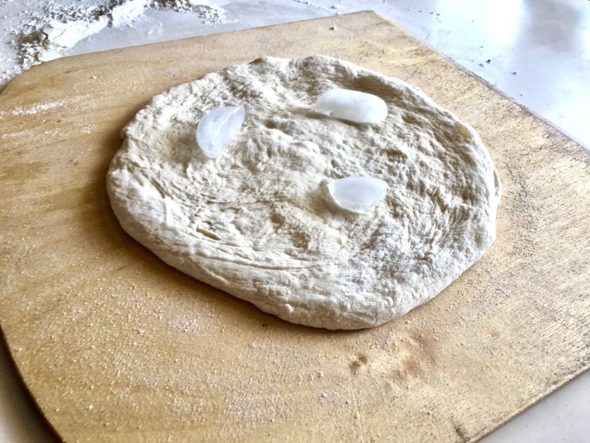 Ο πάγος, εκτός από το βάρος που ασκεί πάνω στη ζύμη για να μη φουσκώσει, ρίχνει και τη θερμοκρασία στην επιφάνεια της ώστε να μην καεί. Αν δεν λιώσει τελείως όταν τη βγάλετε από το φούρνο, αφαιρέστε τον αμέσως για να μη μαλακώσει η ζύμη!