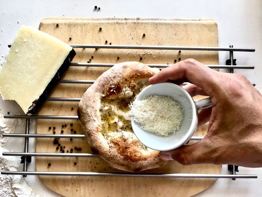 και μετά προσθέτουμε μπόλικο μάυρο πιπέρι και τριμμένο Pecorino Romano.