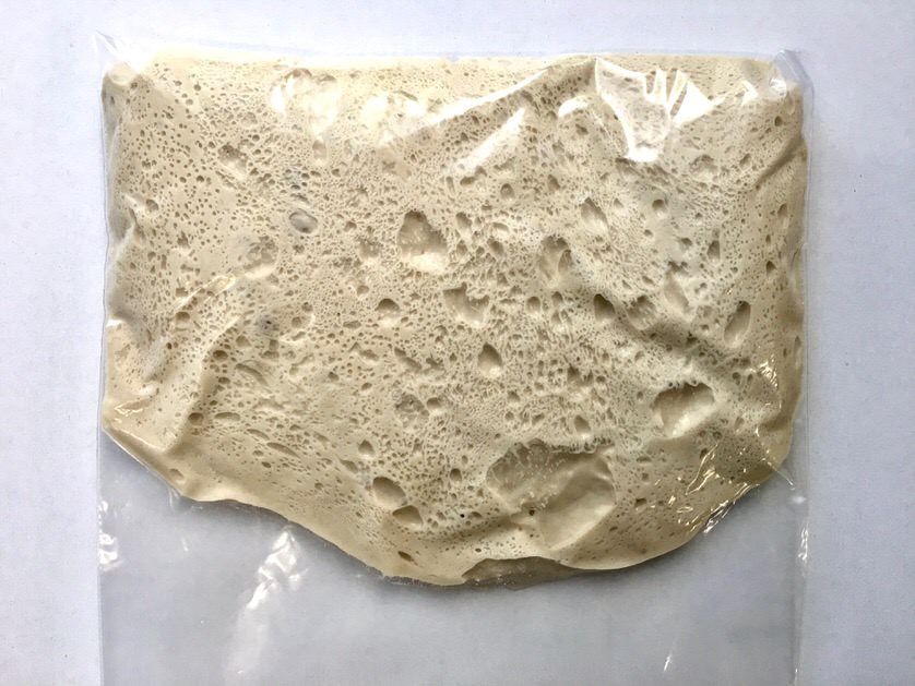 Νωρίτερα αναφερθήκαμε στο ότι η ζύμη θα είναι σχεδόν στην ίδια κατάσταση με την αυτήν που ήταν πριν καταψυχθεί. Η μικρή άλλα σημαντική διαφορά ακούει στο όνομα “υγρασία”. Κατά την διαδικασία απόψυξης η ζύμη θα είναι εμφανώς πιο υγρή στο άγγιγμα με αποτέλεσμα να κολλάει κάπως έντονα στο πάγκο καθώς και στα χέρια μας. Προκειμένου να μην μας δημιουργήσει πρόβλημα στο τελικό άνοιγμα, καλό θα ήταν σε κάθε μετέπειτα βήμα όπου απαιτείται αλεύρωμα, να αλευρώνουμε ιδιαίτερα γενναιόδωρα.