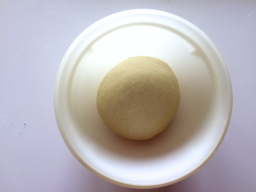 Βάζουμε τη ζύμη σε ένα λαδωμένο μπολ, το σκεπάζουμε με μεβράνη και την αφήνουμε στο θερμότερο σημείο της κουζίνας μας να φουσκώσει έως ότου διπλασιαστεί σε όγκο (30'-60').