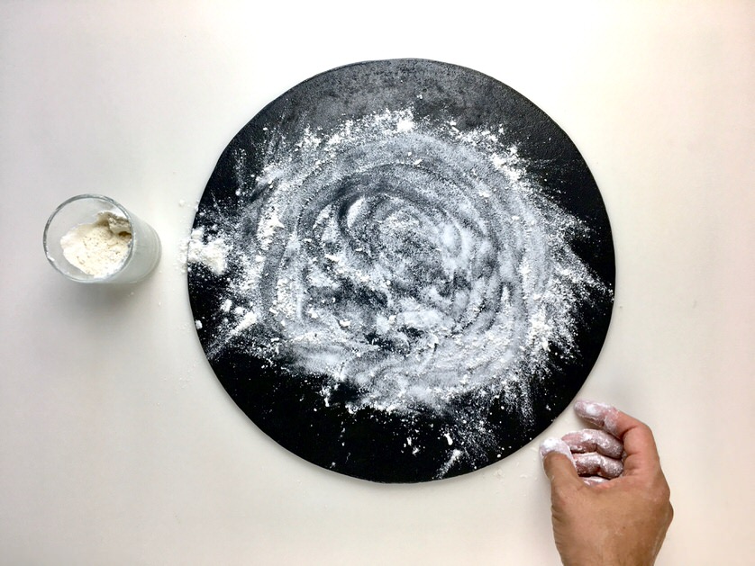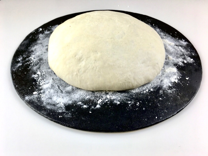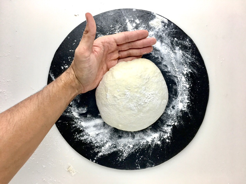 Δίνουμε στη ζύμη σχήμα μπάλας προσθέτοντας λιγό αλεύρι και ακουμπάμε τη ζύμη πάνω στο αλευρωμένο MyPizza Slab. Σκοπός μας είναι η μπάλα να έχει όσο μικρότερη διάμετρο γίνεται για να έχει το τελικό μας προϊόν ύψος και να μην απλώσει πολύ.