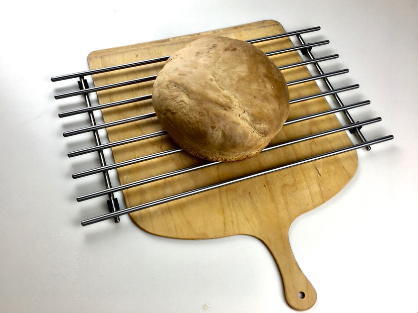 Όταν είναι ψωμί μας είναι έτοιμο, το βγάζουμε από το φούρνο και το περνάμε με λίγο νεράκι από πάνω για να γυαλίσει. Πριν το απολαύσουμε, το αφήσουμε πάνω σε μία σχάρα να για να κρυώσει λίγο.