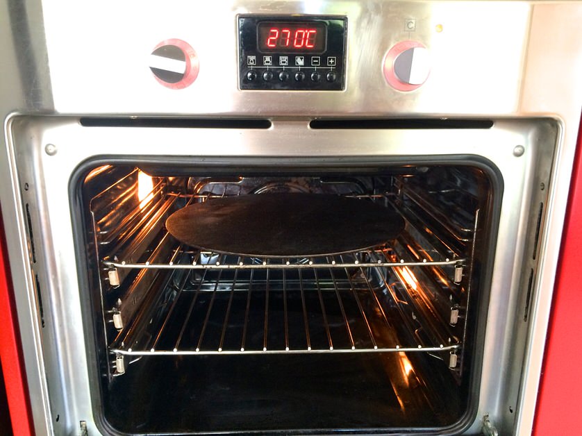 Τοποθετούμε το MyPizza Slab στη σχάρα του φούρνου, στην πρώτη ή τη δεύτερη πιο ψηλή θέση και ανάβουμε τις αντιστάσεις για 45' στο maximum.