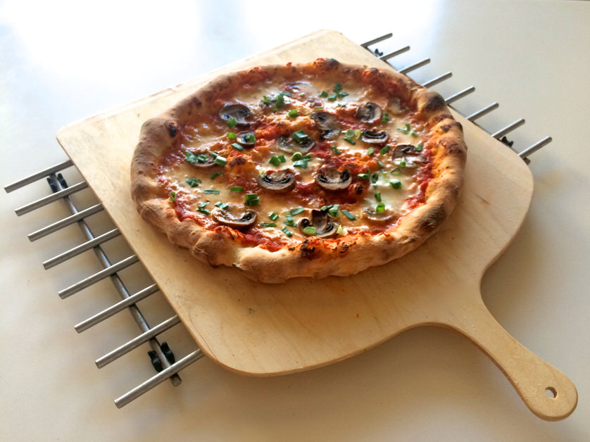 Πίτσα με μανιτάρια και φρέσκο κρεμμυδάκι