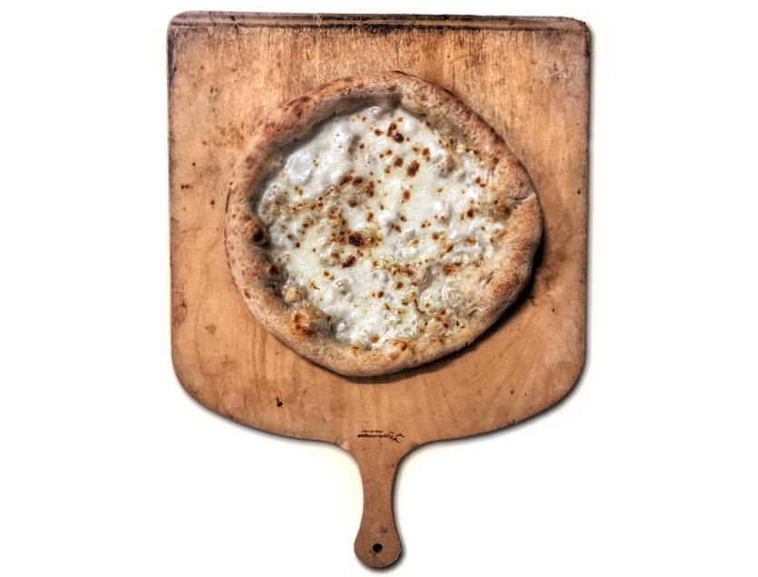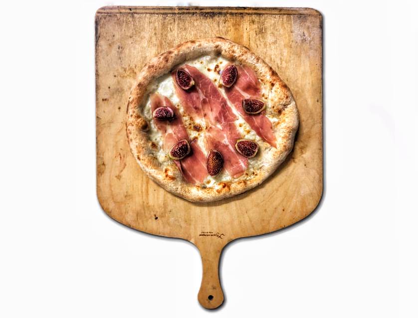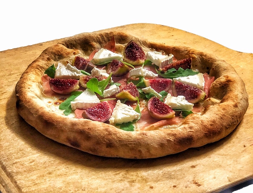 Pizza Bianca με σύκα, κατσικίσιο τυρί, prosciutto και ρόκα.