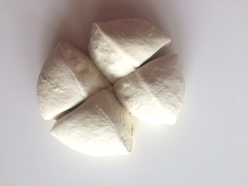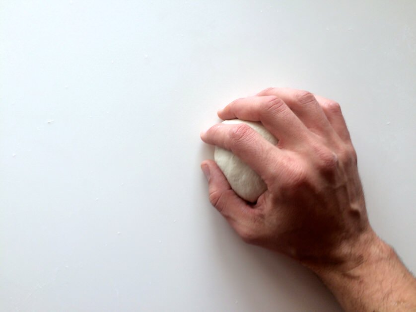 Με τη γροθιά μας πατάμε κάθε μπάλα προς τα κάτω να ξεφουσκώσει και μαζεύουμε το ζυμαράκι προς το κέντρο σχηματίζοντας ξανά μια μπάλα.