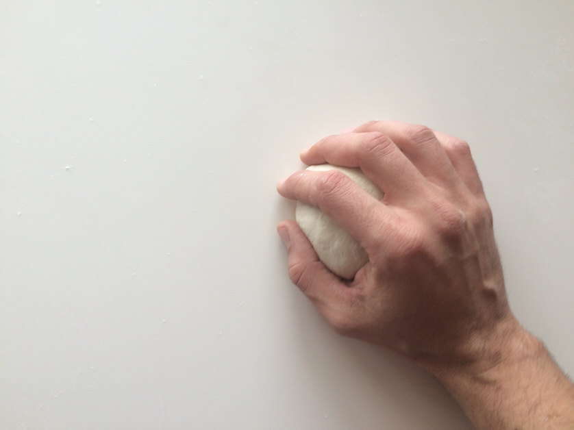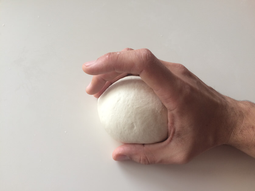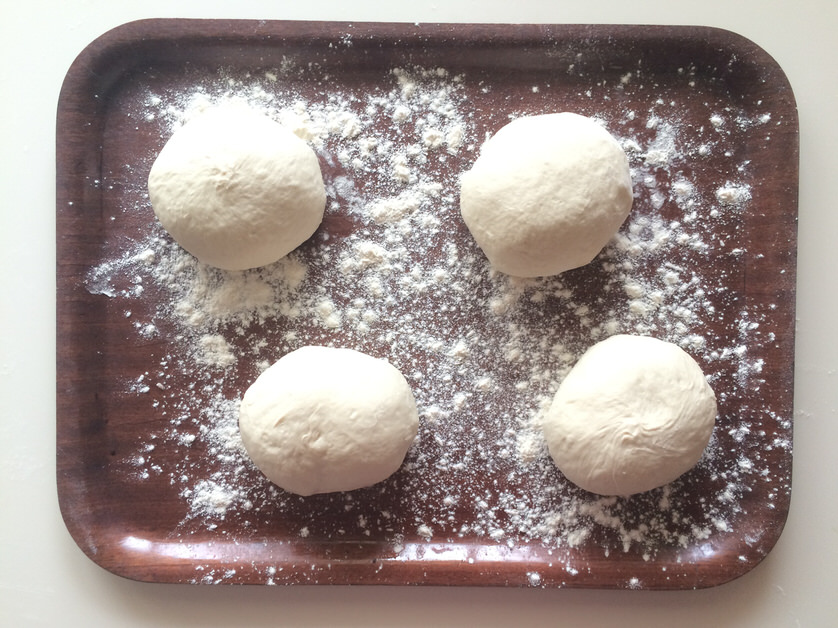 Τρεις περίπου ώρες πριν φτιάξουμε τις πίτσες μας, βγάζουμε όσες μπάλες χρειαζόμαστε από το ψυγείο και τις μεταφέρουμε στον πάγκο μας.