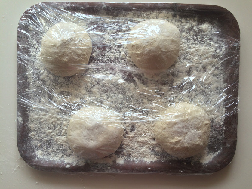 Αλευρώνουμε ένα δίσκο και ακουμπάμε τις μπάλες μας, διατηρώντας για μία ακόμη φορά αρκετή απόσταση μεταξύ τους. Αλευρώνουμε ελαφρά το πάνω μέρος της κάθε μπάλας, σκεπάζουμε το δίσκο μας με μεμβράνη και το αφήνουμε εκτός ψυγείου, σε θερμοκρασία δωματίου. Εάν χρησιμοποιούμε κουτί ζύμης βάζουμε μέσα σε αυτό τις μπάλες μας χωρίς αλεύρι και κλείνουμε το καπάκι.